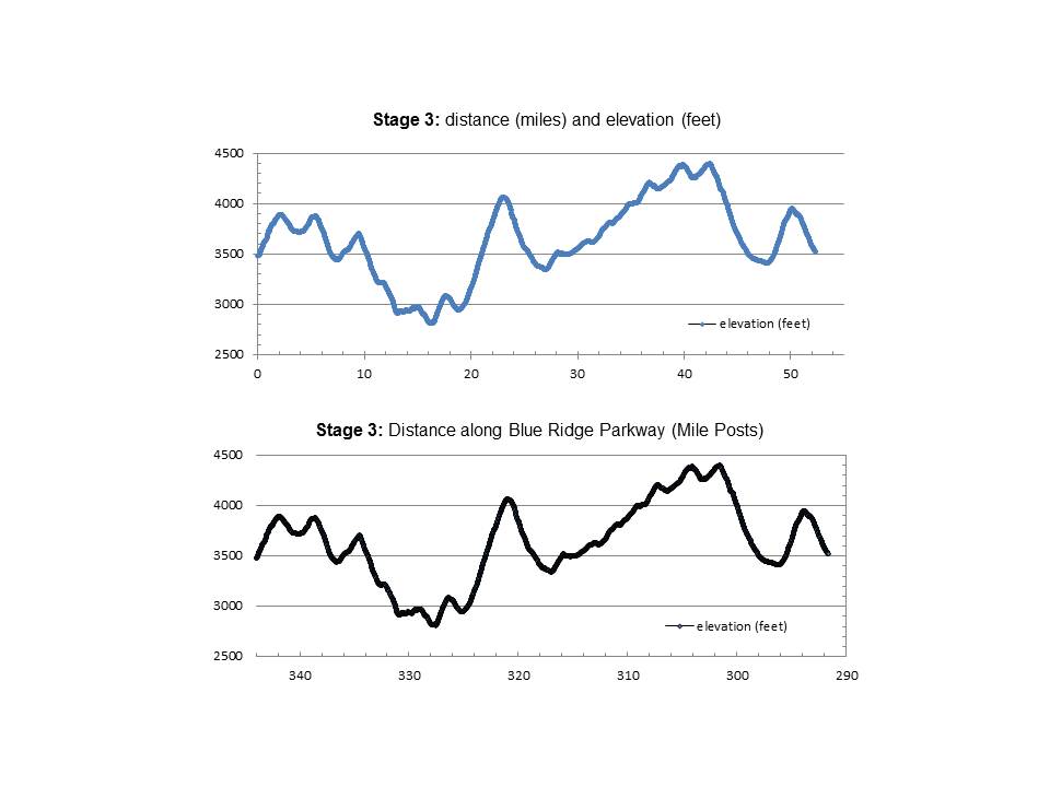 Stage 3 Route Map. A map showing the 52.3 mile route of Stage 3 along the Blue Ridge Parkway starting near Micaville, NC and ending near Boone, NC. Click here to view Stage 3 in Google Maps.