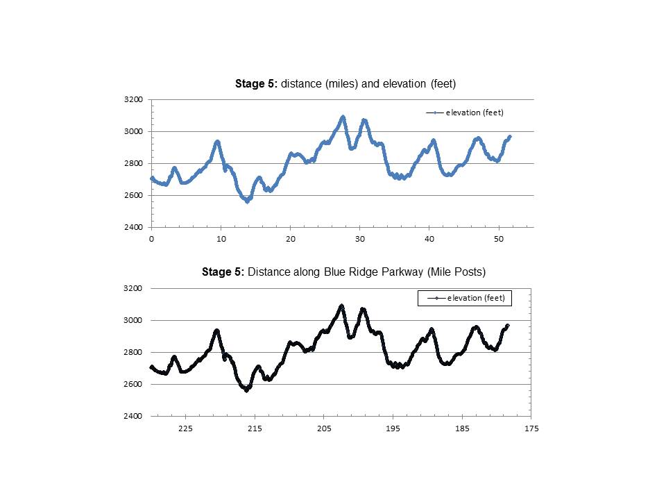 Stage 5 Route Map. A map showing the 51.6 mile route of Stage 5 along the Blue Ridge Parkway starting near Sparta, NC and ending at Meadows of Dan, VA. Click here to view Stage 5 in Google Maps.